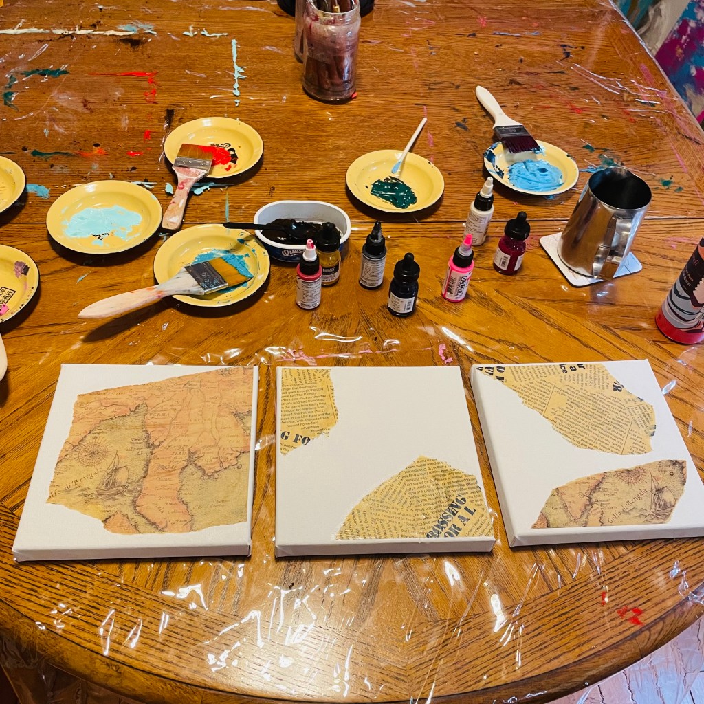 In my childhood I had no interest in painting. It was boring and I thought I wasn’t creative. That’s what my art teacher told me. And I believed him. When my children were born and they painted, I was not enthusiastic. And why? It was a lot of stuff we needed. And we needed space. The next thing was, when we painted with watercolours, it was messy and dirty.