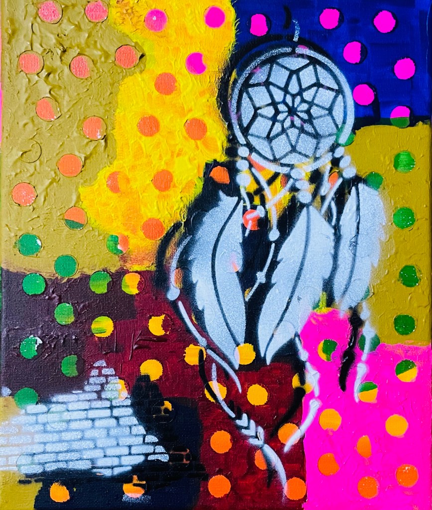 I have been painting since this year. Never before, but now my big love. It’s so crazy to see what I’m made of. I never thought I would be creative and that other people would like my work. The moment when people bought a painting for their own flat or house … wow. Knowing that my paintings are still hanging in that house and people are having a good time with the paintings. Unbelievable.